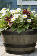 Expertly crafted from high-quality, weather-resistant resin, this durable planter is designed to replicate the classic look of real wood whiskey barrels—without the weight or upkeep. Built to endure all seasons, it stands up to rain, snow, and sun without cracking, rotting, or warping.